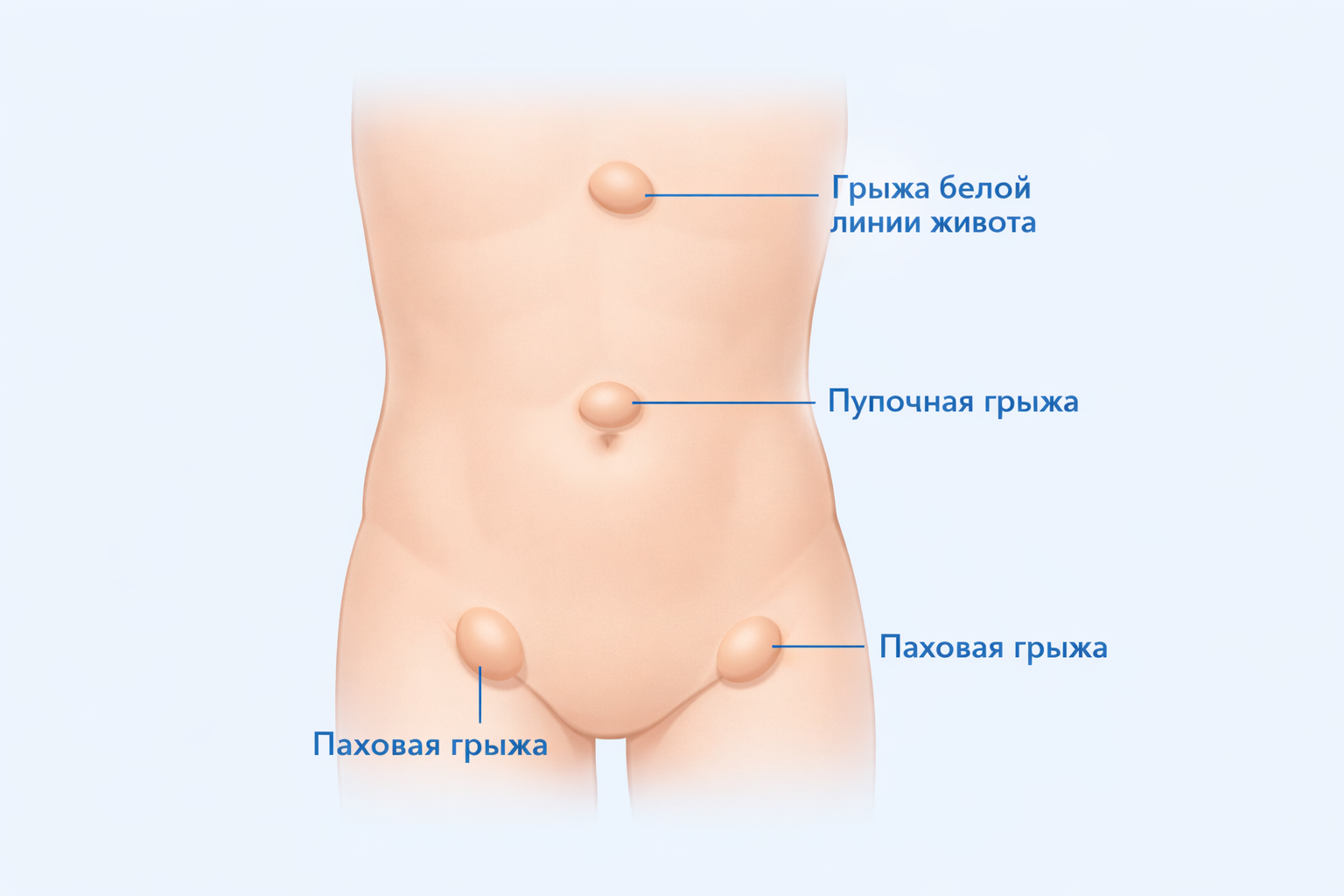 Это выпячивание тканей из брюшной полости через слабое место в брюшной стенке. Обычно человек замечает бугорок под кожей и дискомфорт при нагрузке или кашле.